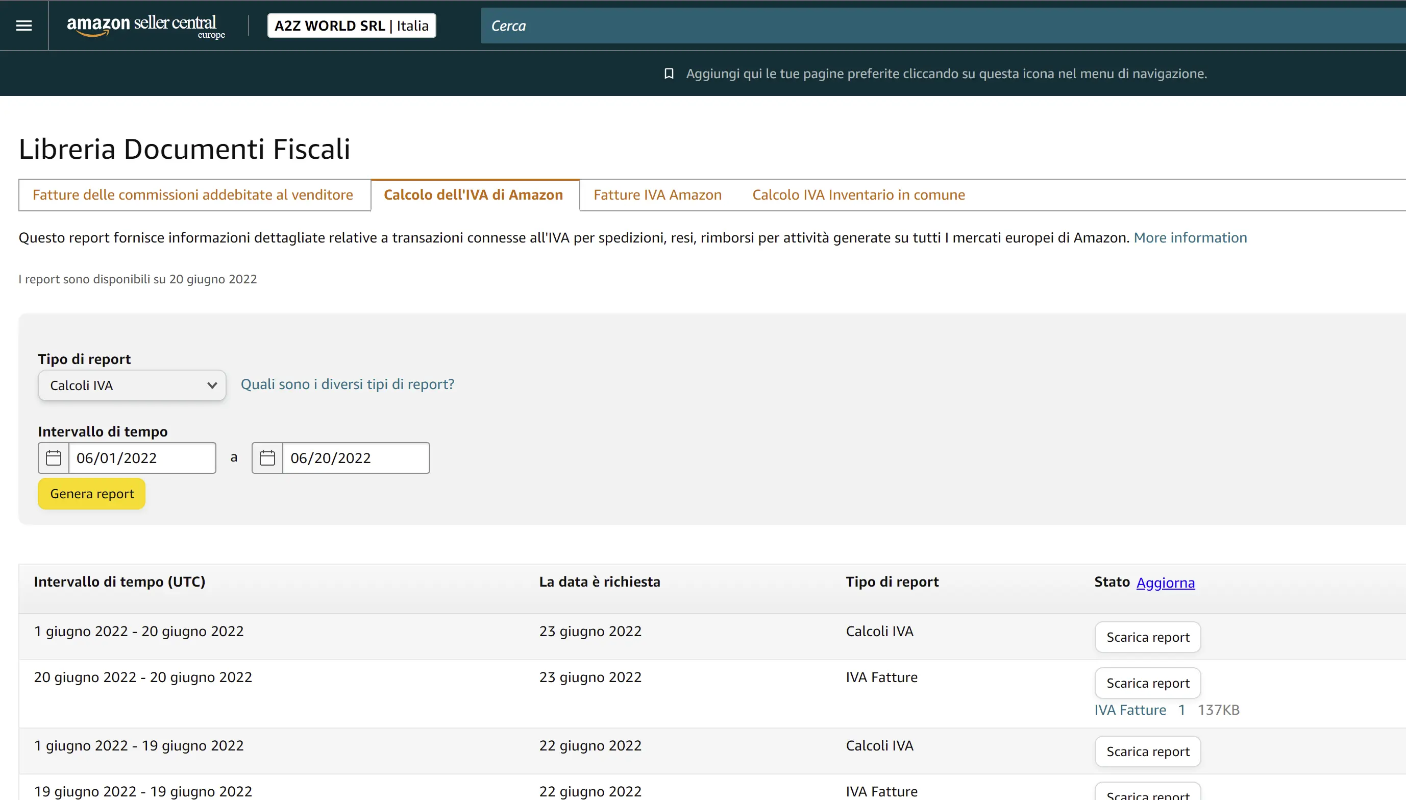 Tipo di report: Calcoli IVA