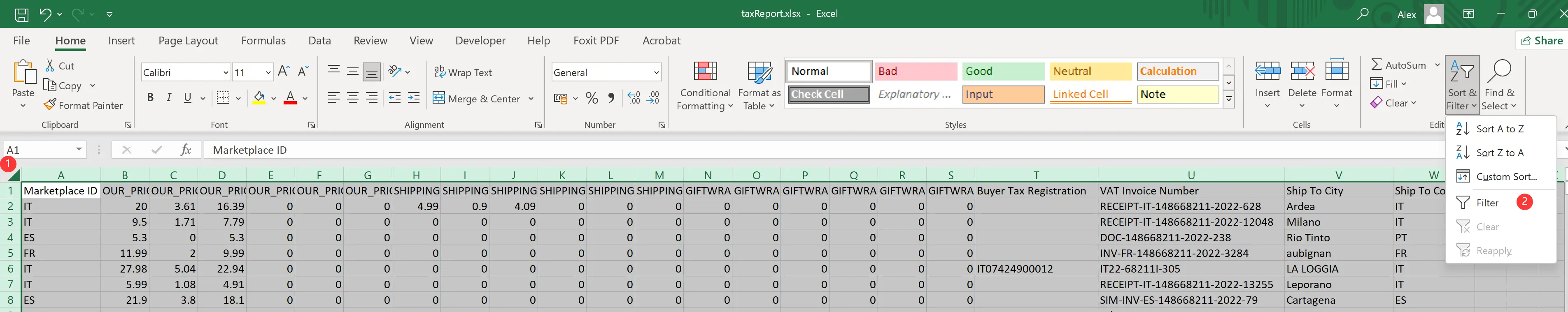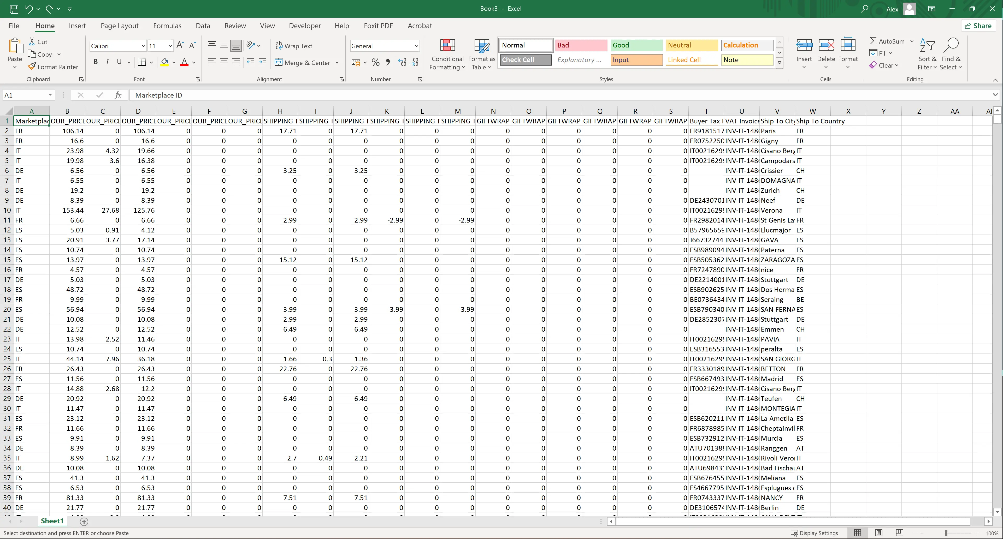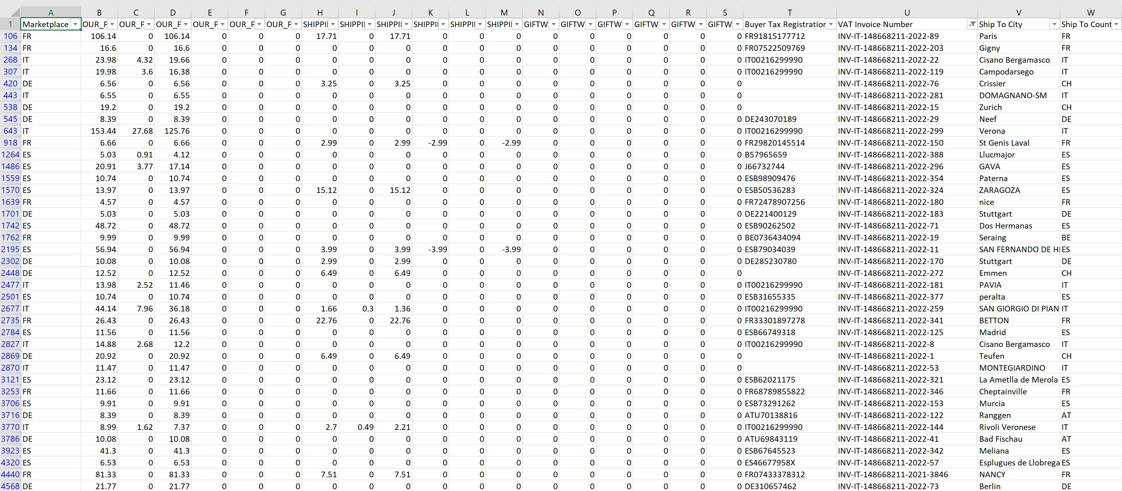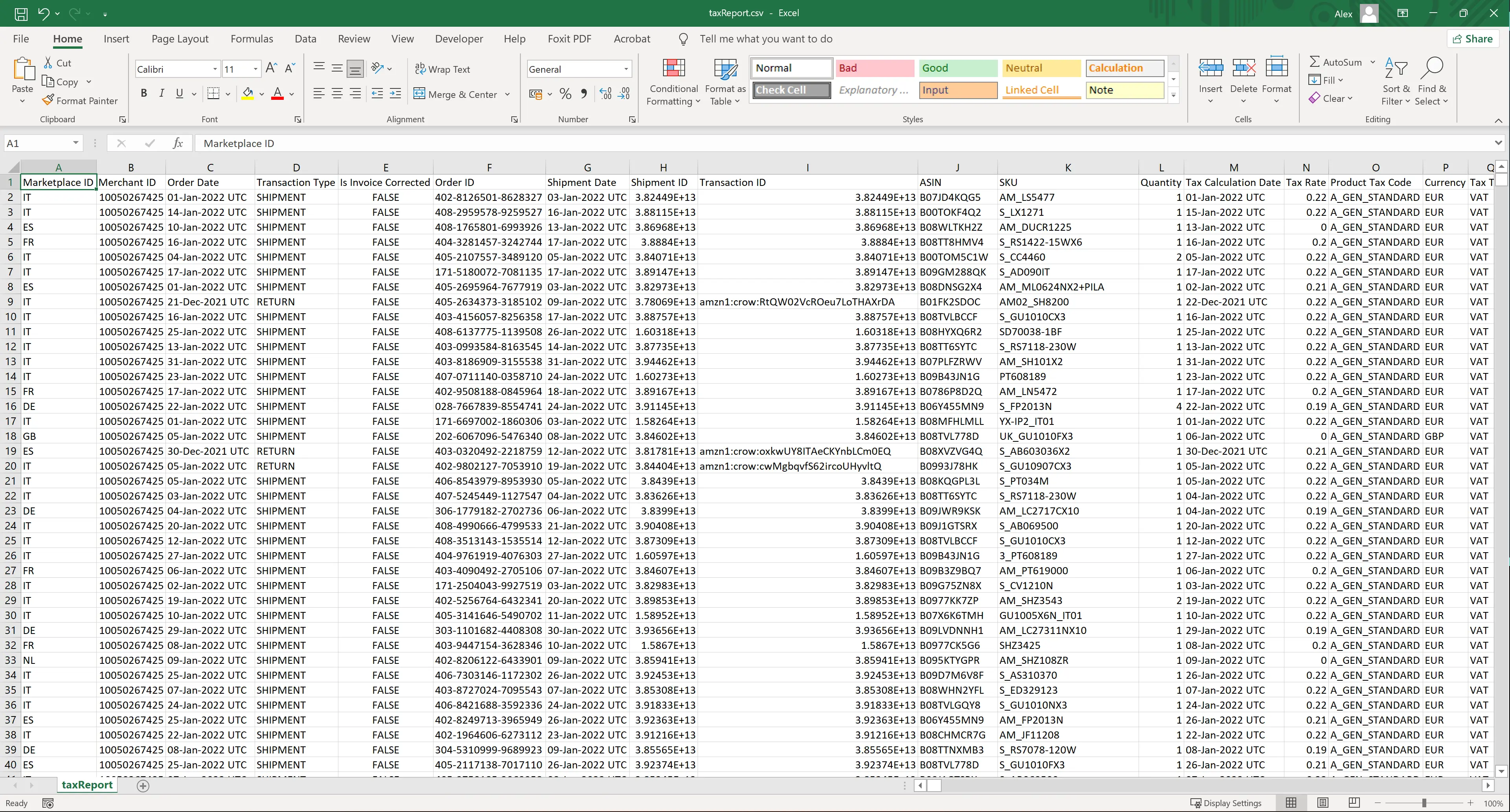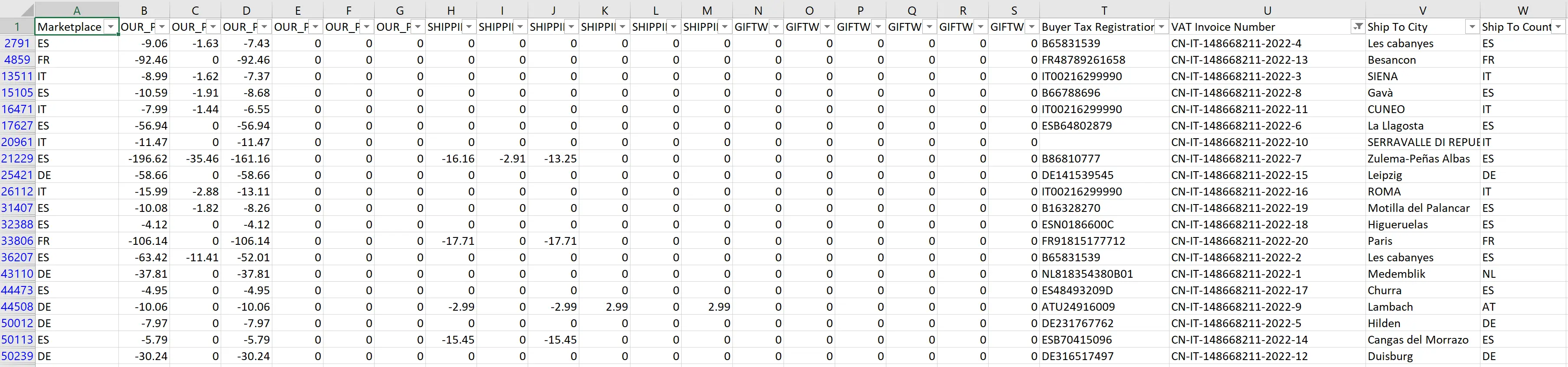 | IVA | OUR_PRICE Tax Amount + OUR_PRICE Tax Amount Promo + SHIPPING Tax Amount + SHIPPING Tax Amount Promo + GIFTWRAP Tax Amount + GIFTWRAP Tax Amount Promo |